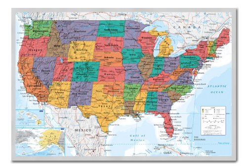 -. Title : USA United States Map Wall Chart Poster Magnetic Notice Board Silver Framed - 96.5 x 66 cms (Approx 38 x 26 inches)
