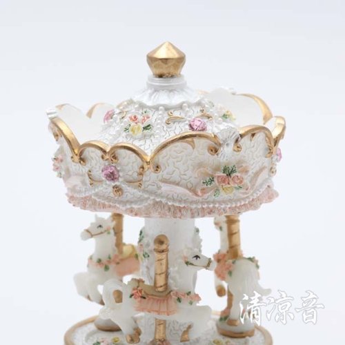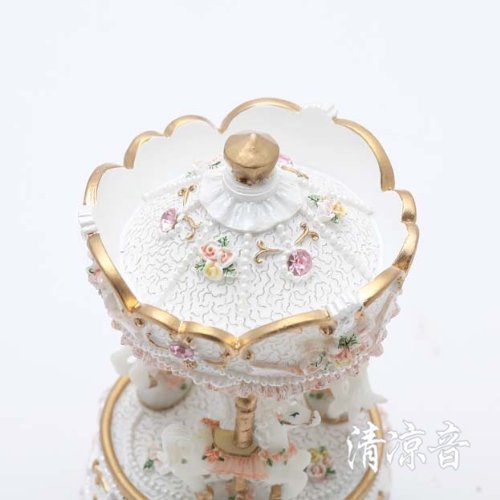 - Feature : 3 horses can rotate with music / sankyo muaical movment / Tune is the Castle in the Sky / Beautiful Carving around the box body