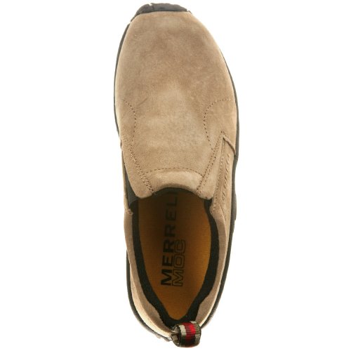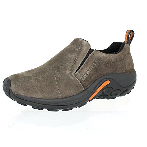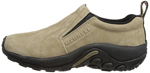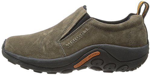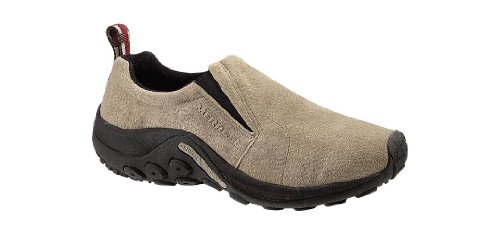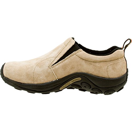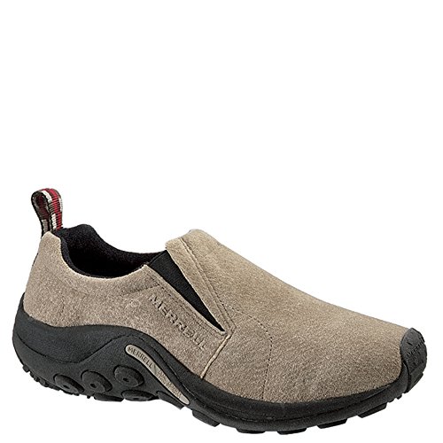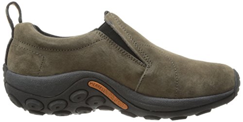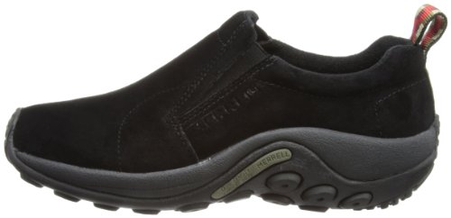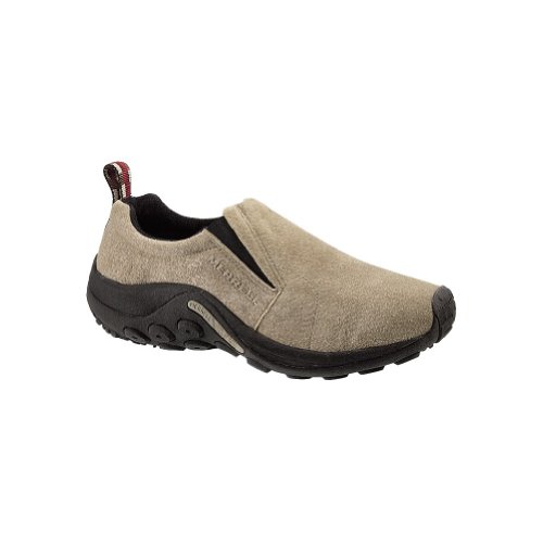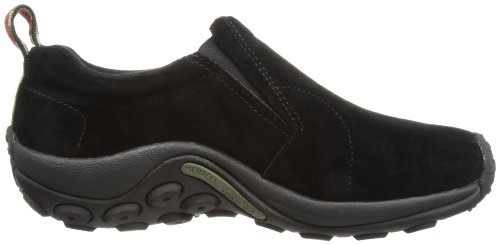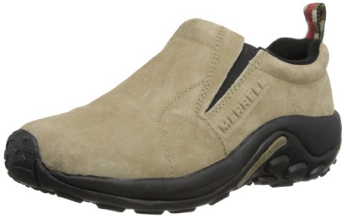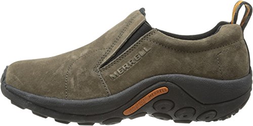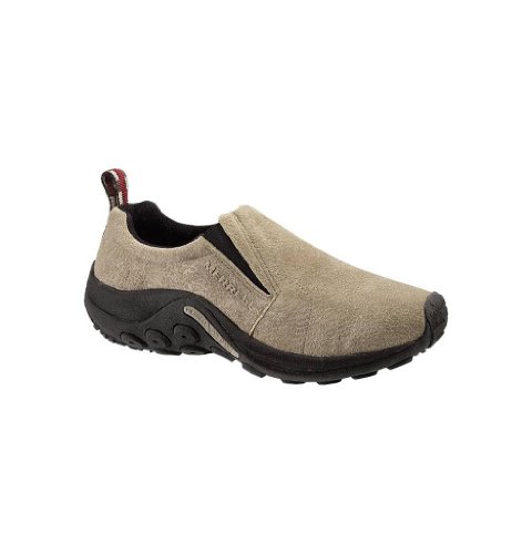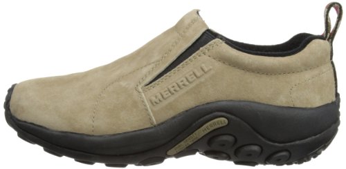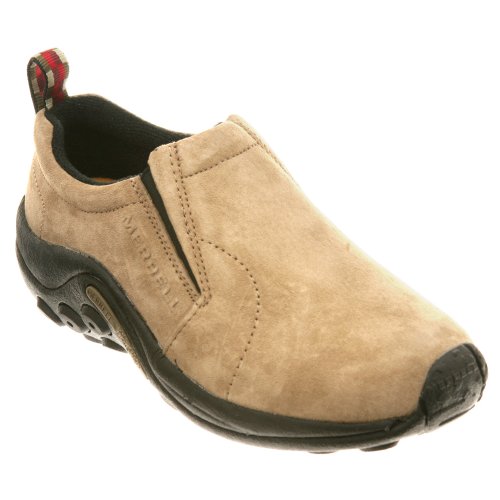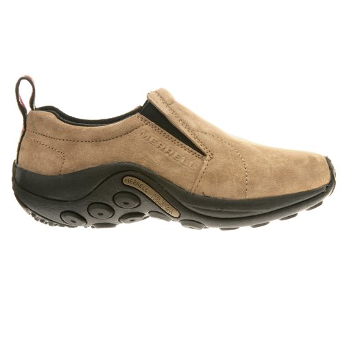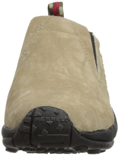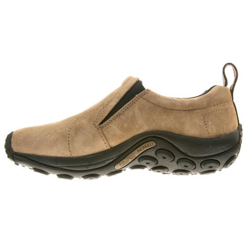 Amazon.com Simple, comfy and casual - the Jungle slip-on from Merrell is a perfect fit. The smooth leather upper keeps things presentable and the elasticized panels deliver a flexible, snug fit and feel. The Jungle Runner sticky rubber outsole has excellent grip across changing terrain while the Air Cushion midsole allows long-wearing comfort. 0