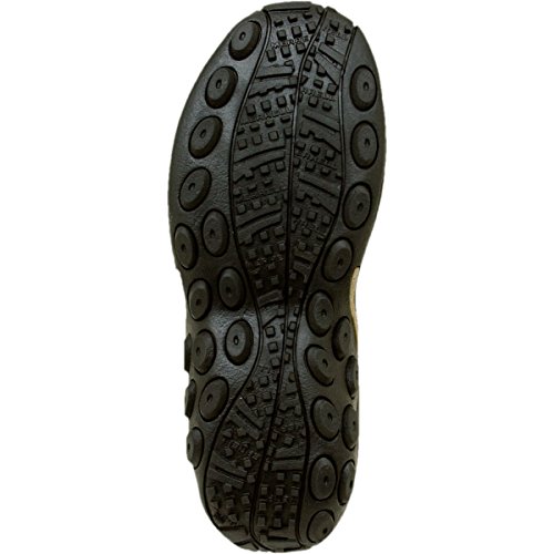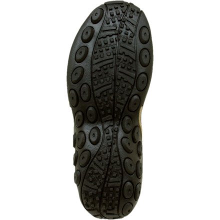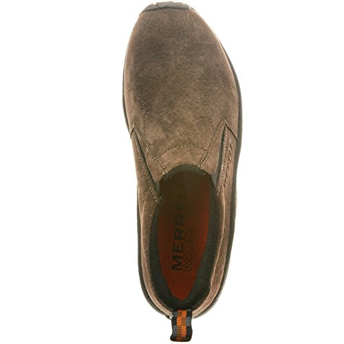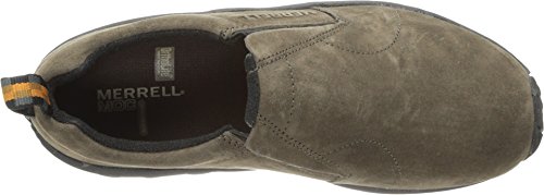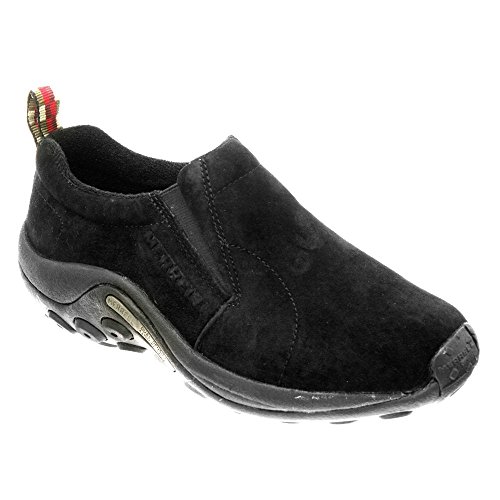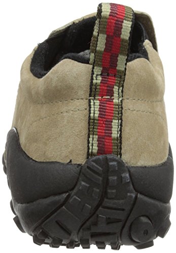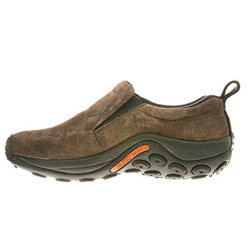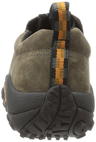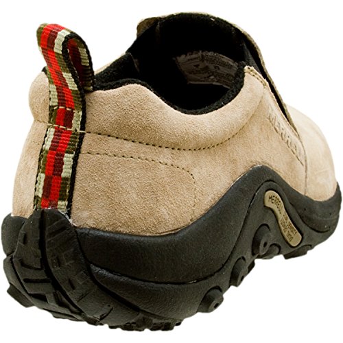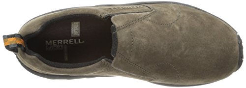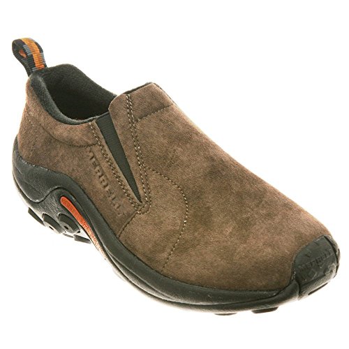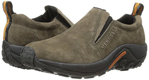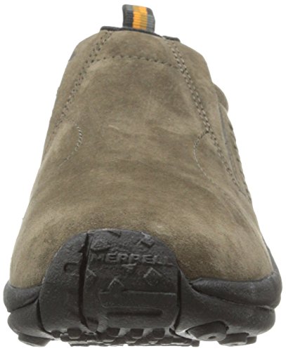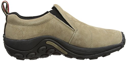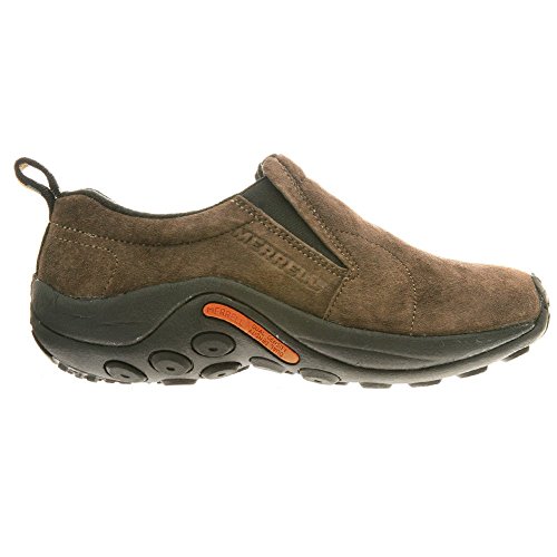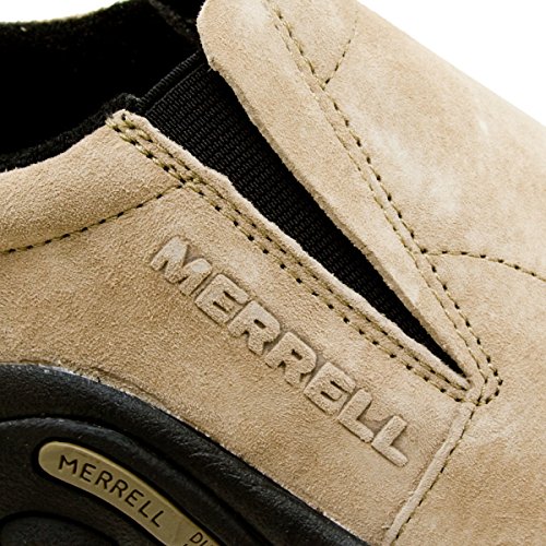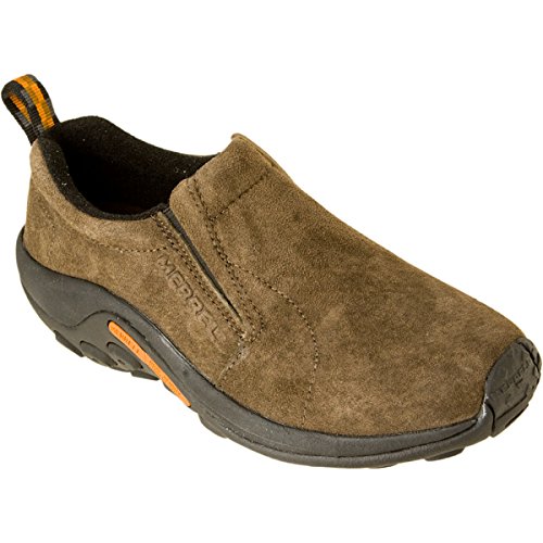 Amazon.com Simple, comfy and casual - the Jungle slip-on from Merrell is a perfect fit. The smooth leather upper keeps things presentable and the elasticized panels deliver a flexible, snug fit and feel. The Jungle Runner sticky rubber outsole has excellent grip across changing terrain while the Air Cushion midsole allows long-wearing comfort. 0