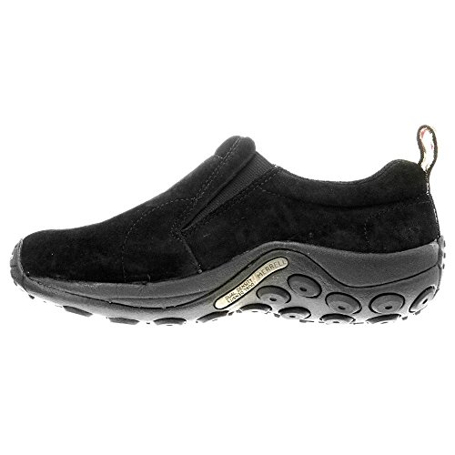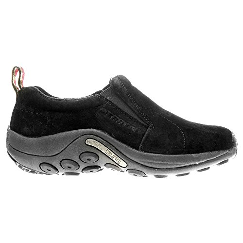 Studio : Merrell Publisher : Merrell Binding : Apparel Product Description Venture out with limitless urban to outback roaming abilities withthe Merrell Jungle Moc Womens. A compression molded EVA footframe cushionsyour stride from heel to toe. The water-resistant leather upper of this women's slip on keeps youin motion in changing weather. A unique Jungle Runner sole utilizessticky rubber and a lug design to keep you actively grounded. This Merrell shoe has a plush air cushion midsole that coddles your tender heels, arches, and toes. After a day on the trail, the Merrell Jungle Moc Womens will be just what you need! 0