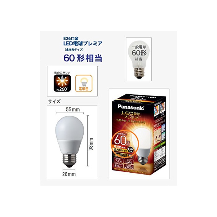 원본상품명: パナソニック LED電球 プレミア電球 一般電球