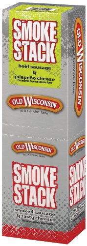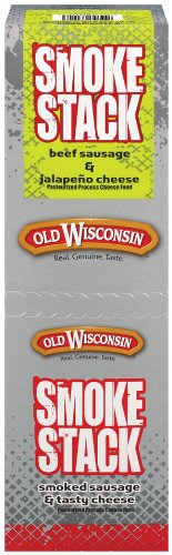 Old Wisconsin Smoke Stacks Beef Sausage with Jalapeno Cheese, 2.5-Ounce Packages (Pack of 18)