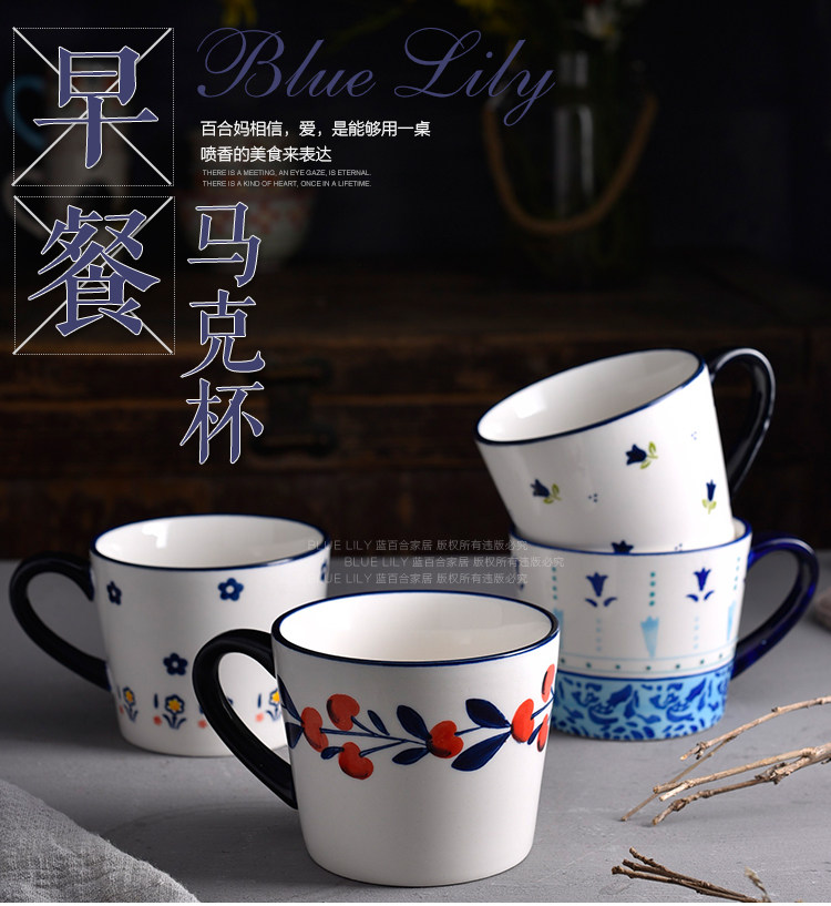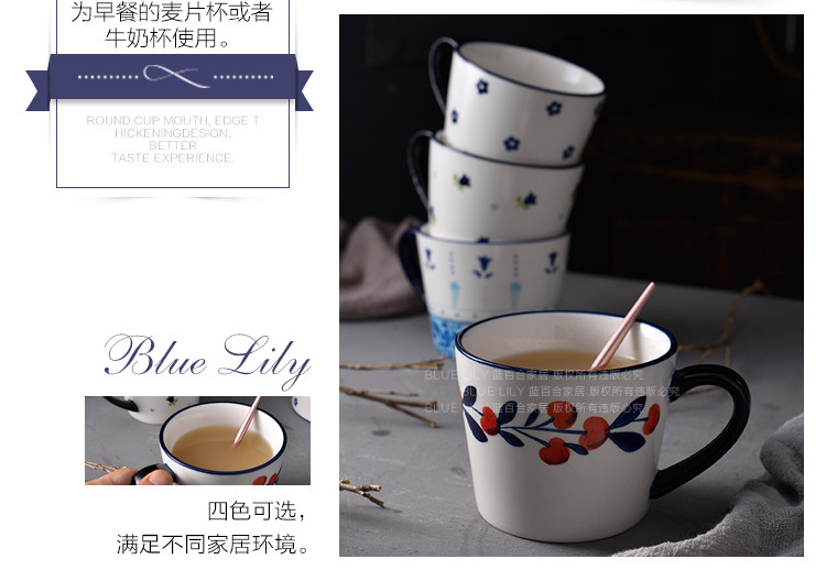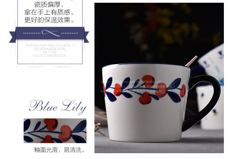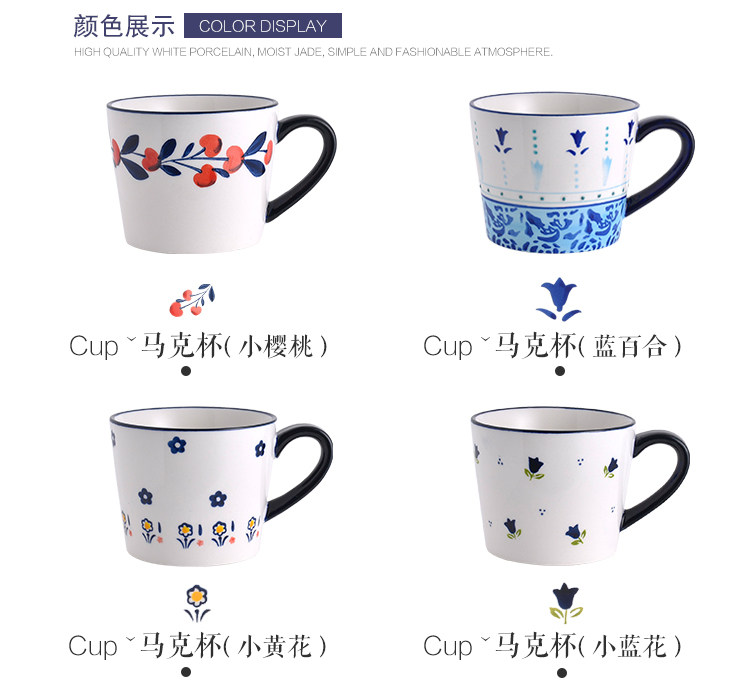 浆果樱桃小清新碎花马克杯水杯麦片杯创意陶瓷大容量早餐杯