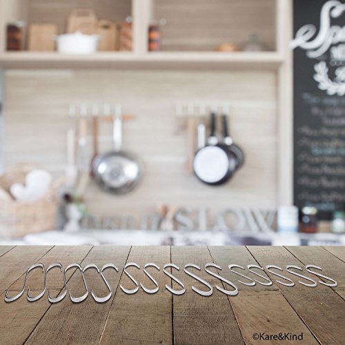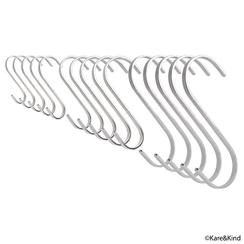 Flat S-Shaped Hanging Hooks - For Kitchen Utensils, Garage or Garden Tools, etc. - Heavy Duty Genuine Solid 304 Stainless Steel - Multi Purpose - This Kit Contains Different Sizes: 5x L, 5x M and 5x S
