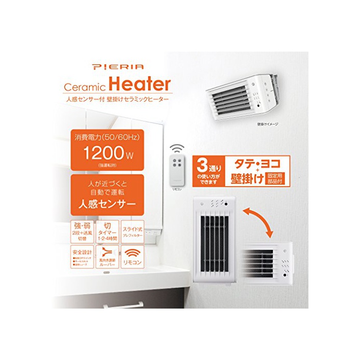 원본상품명: ドウシシャ 壁掛け セラミックヒタ 人感センサ付き 工事不要 ピエリア ホワイト CHS-122J WH