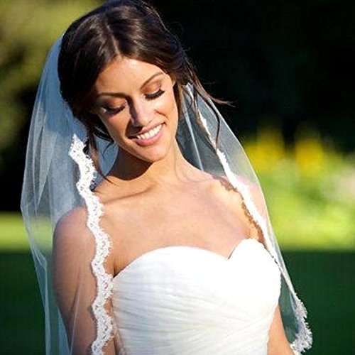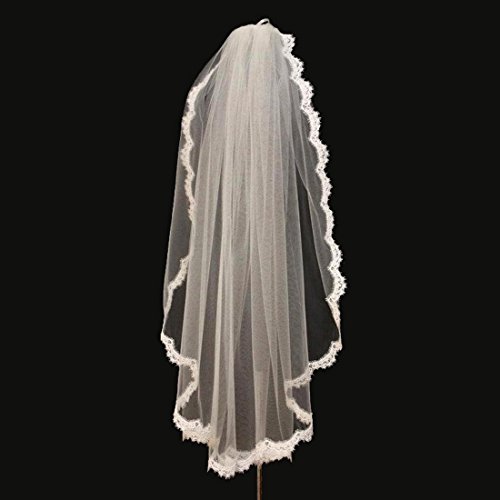 Graceprom One Layer Bridal Veils Lace edge Fingertip Length with comb