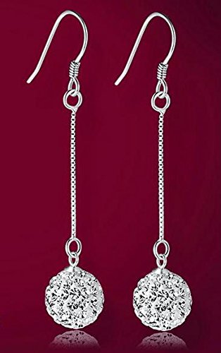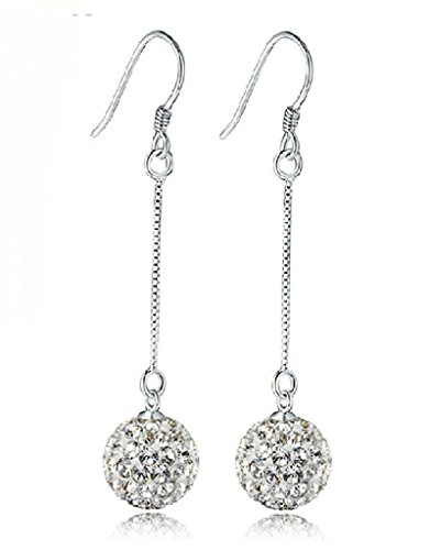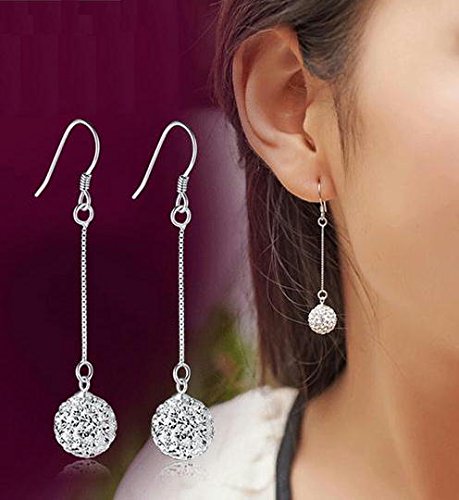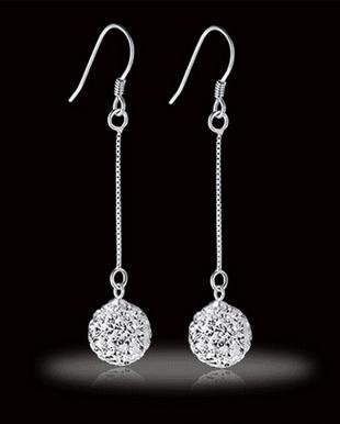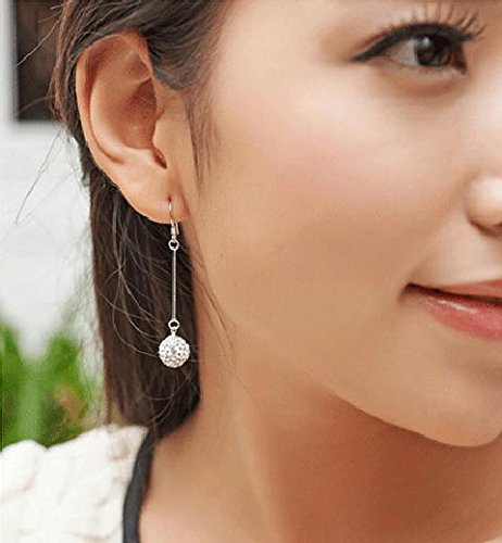 Silhouette 【SL】 크리스탈 볼 파베보루 롱 피어스(귀걸이) 실버925 × 스와로브스키풍 라인 스톤 (10mm)