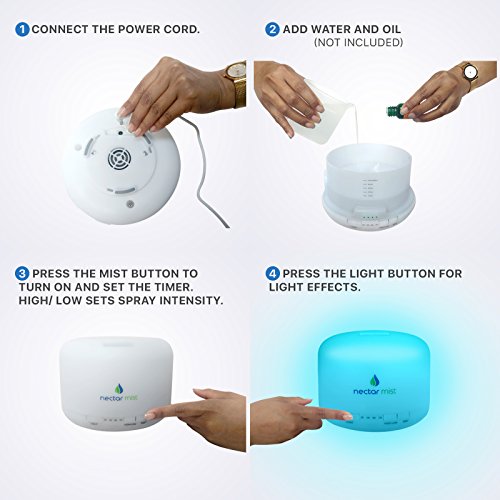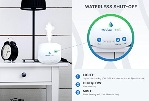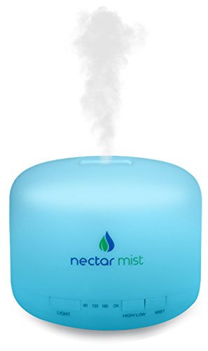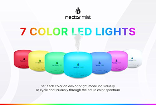 Nectar Mist Ultrasonic 500ml Aromatherapy Essential Oil Diffuser Humidifier with 4 Timer Settings, 7 LED Color Changing Lamps and Waterless Auto Shut-Off System