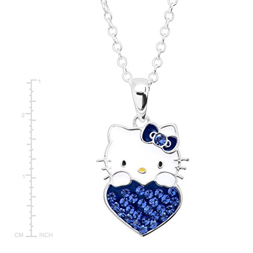The perfect gift for the September-born in your life! Celebrate with this Hello Kitty heart pendant, crafted in sterling silver-plated brass, featuring round-cut blue crystals. Piece measures 1 by 5/8 inches. Comes with a sterling silver-plated brass 18-inch cable chain with a spring ring clasp.Feature