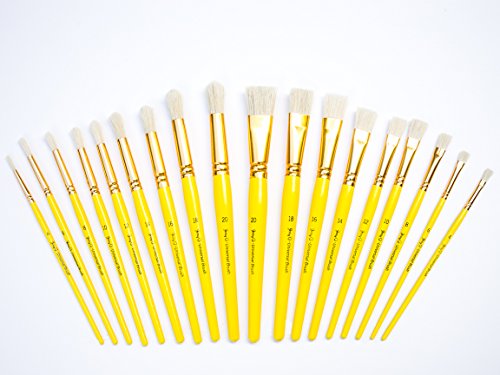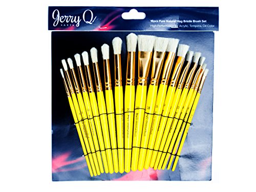 Jerry Q Art 18 pcs Pure Natural Hog Bristle Brush Set for Oil, Acrylic, Tempera. Short Wood Handles JQ181
