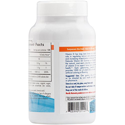 -. Binding : Health and Beauty -. Brand : Nordic Naturals -. Color : Parent -. Label : Nordic Naturals -. LegalDisclaimer : Actual product packaging and materials may contain more and different information than what is shown on our website. We recommend that you do not rely solely on the information presented and that you always read labels, warnings, and directions before using or consuming a product. Please see our full disclaimer below. -. Manufacturer : Nordic Naturals -. PackageQuantity : 1 -. ProductGroup : Health and Beauty -. ProductTypeName : HEALTH_PERSONAL_CARE -. Publisher : Nordic Naturals -. Studio : Nordic Naturals -. Title : Nordic Naturals - Vitamin D3 Gummies - Healthy Bones, Mood, and Immune System Function