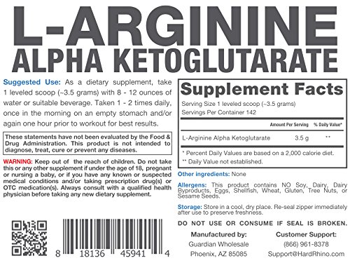 500 Grams (1.1 Lbs), L-Arginine Alpha Ketoglutarate (AAKG) Powder with Scoop Included
