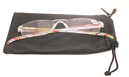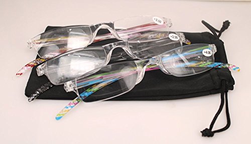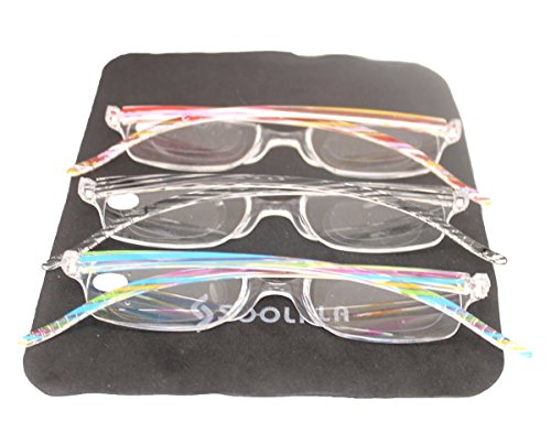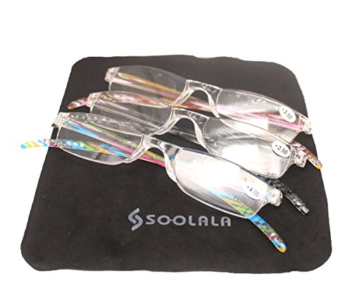 -. Brand : SOOLALA -. Department : womens -. Feature : Lightweight integrated PC frame / High quality composite extra clear lens / Dazzle colors striped legs with non - slip design / Each pair comes with high quality SOOLALA pouch, easy to carry / Lens width: 45mm, height: 25mm, bridge: 15mm, arm length: 140mm -. PackageQuantity : 3 -. ProductGroup : Apparel -. ProductTypeName : EYEWEAR -. Size : small -. Title : SOOLALA 3-Pair Value Pack Striped Integrated PC Magnifying Reading Glasses
