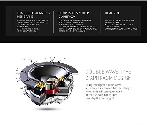 Double Wave Type Diaphragm Design: Using intelligent Double wave to reduce the noise to thin film design. Whether it is listening to music, or received calls hands-free can play the real sounds! Size: 3.5 x 3.5 x 1.65 Inches Includes: Speaker, charging cable and hook. Order you V1 Bluetooth speaker today.