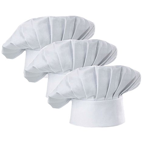 WJINER Chef Hat Set of 3 Adult Adjustable Elastic Baker Kitchen Cooking Chef Catering Cap,White or Black (White)