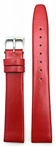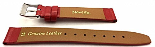 -. Feature : Polished Calf Leather / 14mm lug width with 12mm buckle width / Stainless Steel & Nickel Free, Silver Buckle Clasp / Woman's Regular Length 105x65mm / Red Colored, Flat, Watch Strap that matches well with most fashionable styles