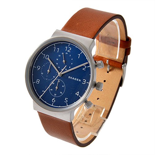 스카《―겐》 앵커 40mm 크로노그래프 쿼츠 맨즈 손목시계 SKW6358 SKAGEN ANCHER 40mm 아날로그블루×브라운 가죽 벨트 ◆SKAGEN(스카《―겐》)서는 1989년에 덴마크 에 있는 작은 마을에서 탄생 했습니다.스타일리시에 세련된 아름답다디자인와 품질의 높이를 알맞은 가격에서 실현.낭비를 생략했다디자인서는 싫증이 나지 않아캐쥬얼한 복장이나 조금 포멀인 복장으로도 딱입니다.불과 설립15년째에 손목시계 브랜드로서 세계10위의 지명도를 획득 하는 등,폭넓은 연령층에 지지를 받고 있는 브랜드입니다.앵커 시리즈.심플한디자인에 시인성이 좋은 아라비아 숫자 인덱스.크로노그래프 탑재,실용성으로도 뛰어나 있습니다.