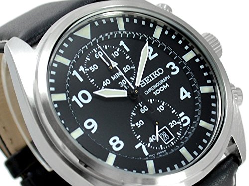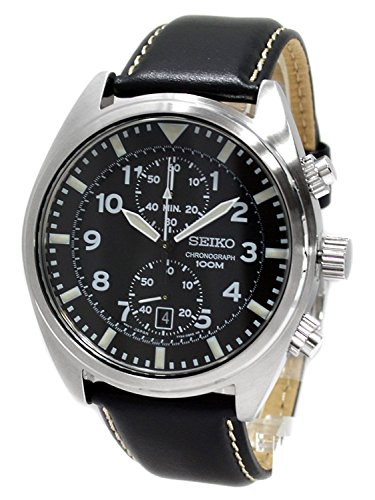 원본상품명: セイコ? SEIKO SNN231P2 Chronograph クロノグラフ Mens Black Dial Black Leather Strap Quartz Watch 男性用 メンズ 腕時計