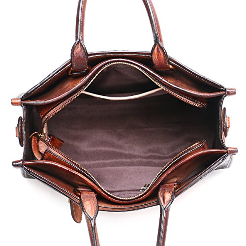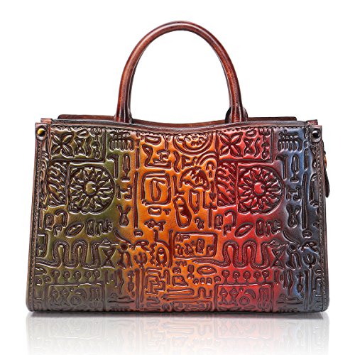 APHISON Women Genuine Leather Handbag Large Capacity Tote Bags Embossed Design Shoulder Bag For Ladies 6636