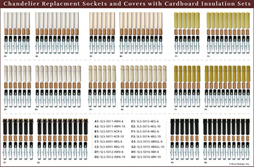 Royal Designs Chandelier Socket covers are available in 2 colors, White or Cream. These units can be used as replacement chandelier socket covers, or to simply change the look of your chandelier. All our our Chandelier Socket Covers also come with a paper insulator. These units, are available in a variety of quantities. You can purchase a pair, a half-dozen or 10 units.Feature