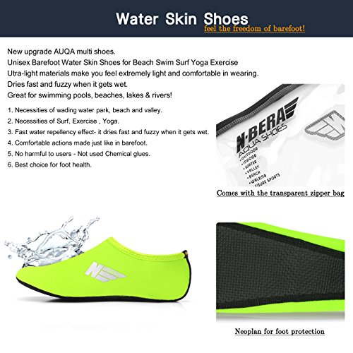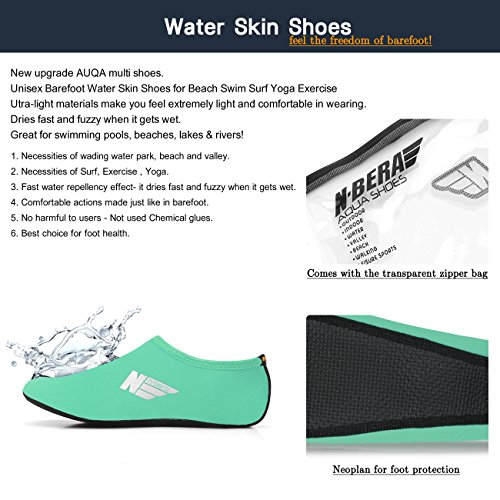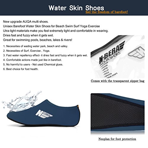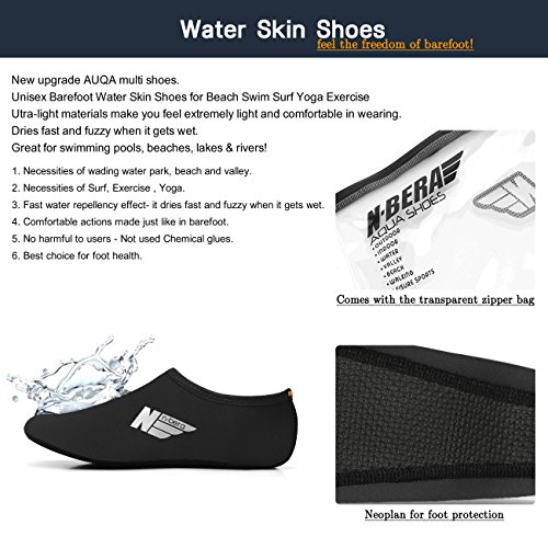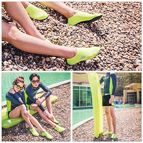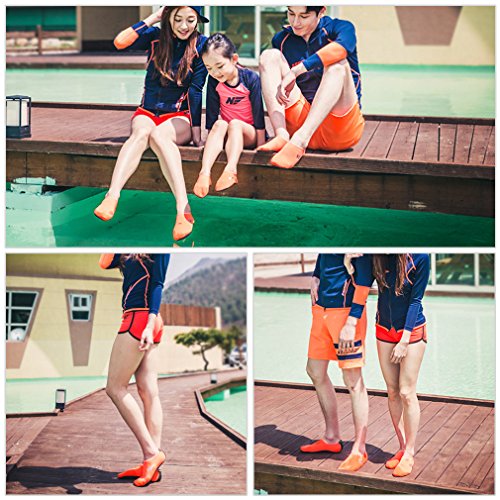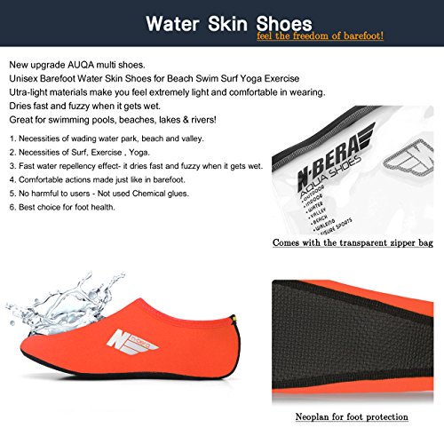 *Size Chart* XXS : US Youth 10 EUR 26 XS : US Youth 11 EUR 27 S : US Women: 5.5~6.5 M : US Women: 7~7.5 L : US Women: 8~8.5 Men: 7~7.5 XL : US Women: 9~10 Men: 8~9 2XL : US Women: 10.5~11 Men: 9.5~10.5 Feel the freedom of barefoot!! Convenience of ultra-light weight (33-43g). Utra-light materials make you feel extremely light and comfortable in wearing. Water Skin Shoes Aqua socks for Men, Women, Kids. No.1 Necessities of wading water park, beach and valley. No.2 Necessities of Surf, Exercise , Yoga. No.3 Fast water repellency effect- it dries fast and fuzzy when it gets wet. No.4 Comfortable actions made just like in barefoot. No.5 No harmful to users - Not used Chemical glues. No.6 Best choice for foot health. Skin shoes by barefoot feeling. Excellent comfortable feeling- it is proud of comfortable fit on the foot. 0