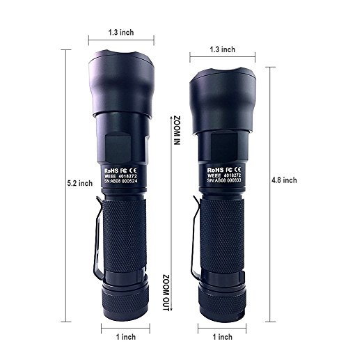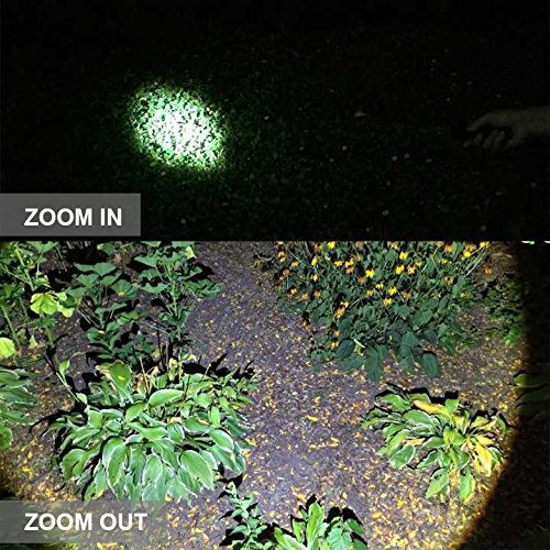 - 5 MODES & ZOOMABLE: Reading mode - Low - Middle - High - Turbo and hidden Strobe available; Adjustable focus for close or long range; Zoom in or zoom out for spotlight (intense beam) and floodlight (flood beam).