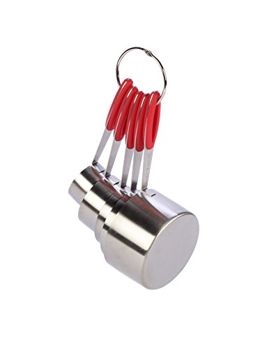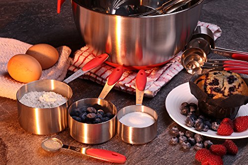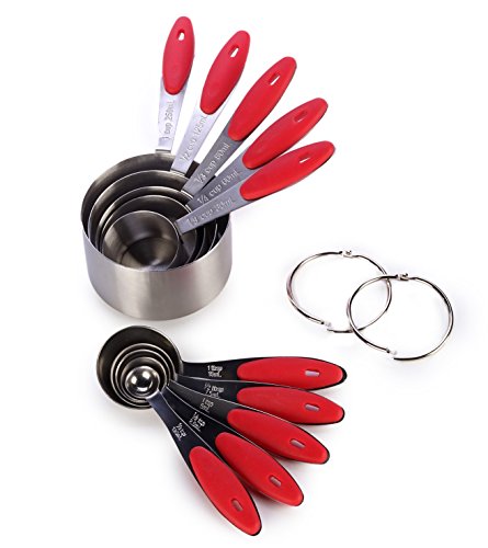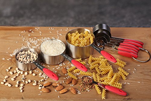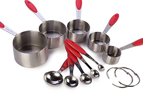 Dora&Jean Stainless Steel Measuring Cups and Spoons Set with Silicone Grip, 10 Pieces - Red