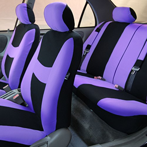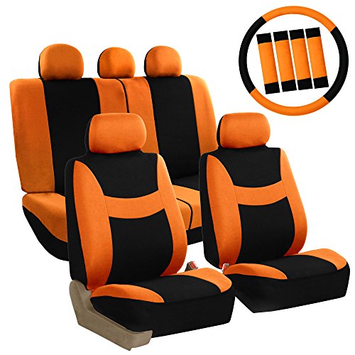 Upgrade the look of your vehicle with our beautifully designed seat covers. The weaving style offers a crisp update to the usual basic seat covers. Our soft, high quality fabric is backed by 3mm of breathable foam padding to keep you comfortable and cool in even the hottest temperatures. ? Sustains your automobile interior upholstery. ? Concealed Velcro opening and adjustable straps helps installation, removal and reattachment ? Special stitching technique enables side airbag compatibility ¡V officially tested! ? Durable stretchy fabric with opening pocket for storage ? Engineered to accommodate traditional and heated seats ? Semi-customized to fit most vehicles ? Material is breathable. Machine wash and air dry. This combo set includes seat and headrest covers for two (2) bucket seats, one (1) rear bench, one (1) steering wheel, and (4) seatbelt pads.Feature