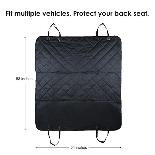 This dog car hammock is made of 600D Oxford fabric materials that are 100% waterproof and can protect your car seat from pet hair, mud and water. The nonslip soft rubber backing and multiple secure straps keep the pet seat cover in place even on leather seats.