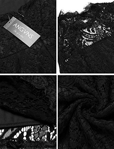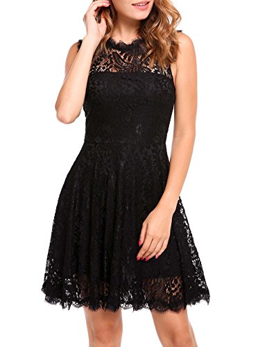 ANGVNS Women Sleeveless Floral Lace See Through Backless Fit and Flare Cocktail Dress with Lining