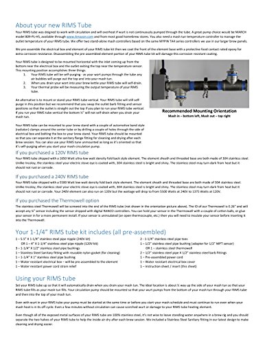 1-1/4" 120V Electric RIMS (Recirculating Infusion Mash System) Tube Kit with 1650 Watt Stainless Steel Element