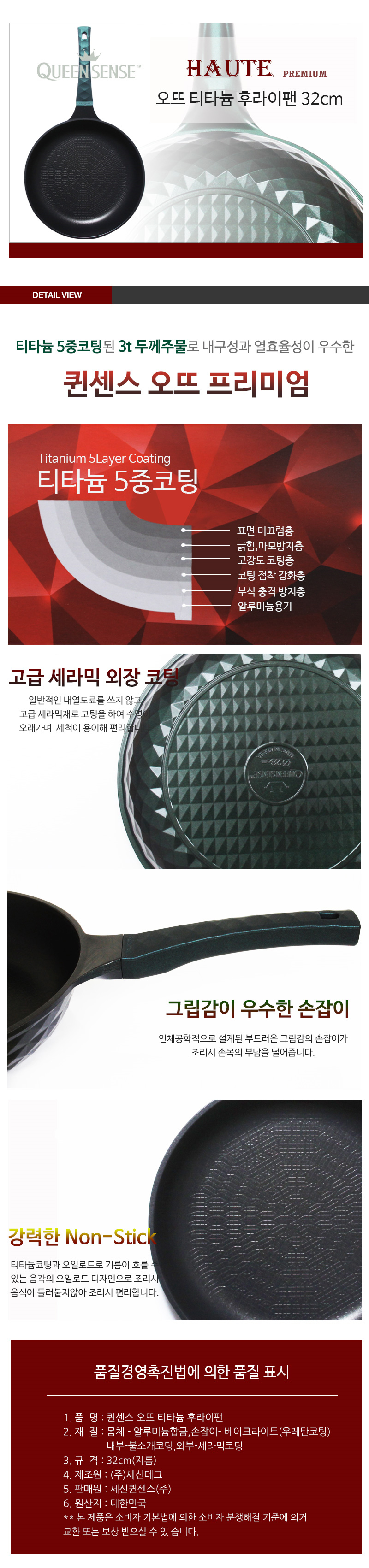 Basic coated titanium frying pan 32cm court fan 5
