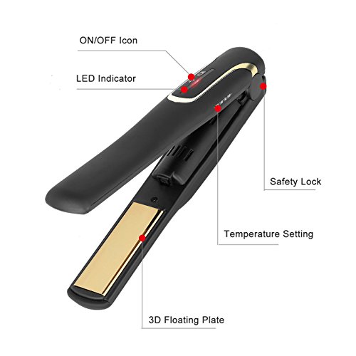 - [Cordless Hair Straightener]With 2200mAh rechargable baterry, charging by USB connector, worldwide use, don't need to worry voltage compatible 110V-240V, package with a pouch and safely lock design are convenience for storage