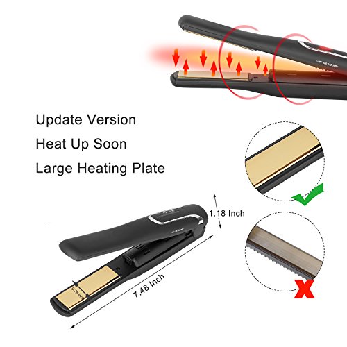 - [Temperature Setting Adjustable]Adjustable temperature 320F 356F 392F (160C,180C, 200C) to suit all hair types, wide enough plate for any hair length and hair types, yet narrow enough for bangs