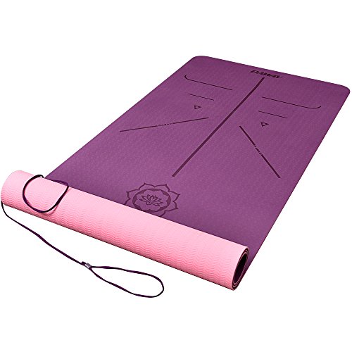 - 🎁BODY ALIGNMENT SYSTEM - professional yoga mat, help you focus and adjust your hands and feet to the accurate position, keep body in proper alignment. Warm tips: New yoga mat will have small smell, please wipe with a wet towel before the first use, then put it in cool and ventilated place 1-2 days, then smell will disappear