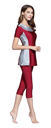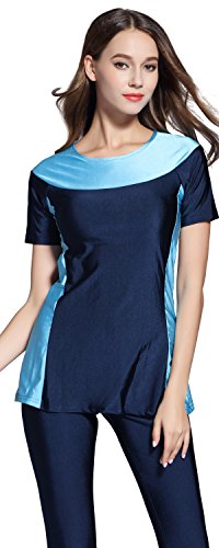-. Title : Ababalaya Womens' Color Block Moderate Cover 2 Piece Swimsuit Burkini