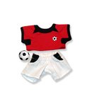 -. Feature : Red and white soccer outfit with black trim / fits 8 inch plush / includes small soccer ball / 2 piece outfit
