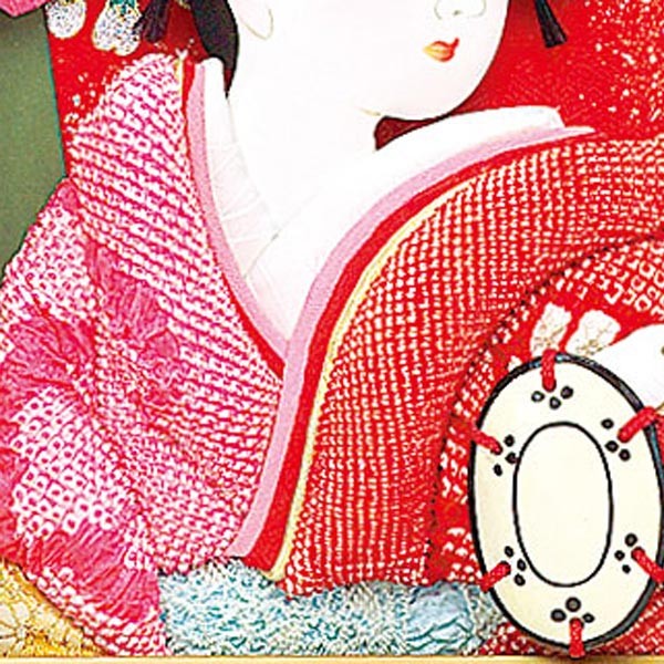 ・バック板には落ち着いた色目の羽子板セット。