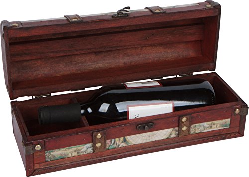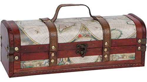 13.8" Old World Map Design Wine Box - Wooden with Leather Handle and Accents - Holds 1 Bottle - By Trademark Innovations