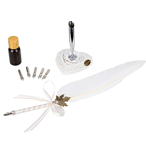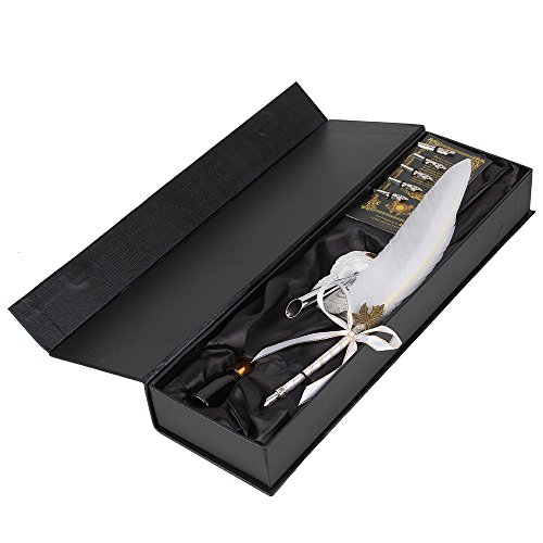 -. Binding : Kitchen -. Brand : BQLZR -. Color : White -. EAN : 0702382777876 -. Feature : Feather Quill Nib Pen / The design of this feather quill is loyal to that of the feather quill in ancient Europe. -. Label : BQLZR -. Manufacturer : BQLZR -. Model : N11846 -. MPN : N11846 -. PackageQuantity : 1 -. PartNumber : N11846 -. ProductGroup : Office Product -. ProductTypeName : WRITING_INSTRUMENT -. Publisher : BQLZR -. Studio : BQLZR -. Title : BQLZR Noble White Goose Feather Ribbon Dip Pen Metal Nibs Cap Set With Elegant Carving Stone Pen Holder Stationery Gift -. UPC : 702382777876