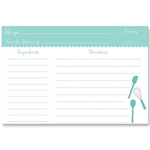 Recipe Cards, Aqua,Blue, Bridal Shower, Housewarming, Wedding, Housewarming, Gift, Stock the Kitchen, Vintage, Retro, Size 4 x 6, Double Sided with Lines, Set of 24 Printed Cards, Basic Recipe