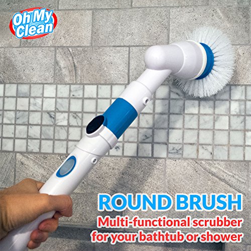 -. Feature : CLEANS BETTER THAN THE COMPETITION - Trusted by professional cleaners, our Power Spin Scrubber cleans better and lasts longer. New & improved design easily lifts away dirt and grime - even from hard-to-reach corners and crevices. / SCRUBS & CLEANS IN SECONDS - With over 300 RPM of scrubbing power and a powerful rechargeable battery, all your stubborn soap scum, mildew, grime, and hard water stains will be gone in no time. Just turn on and watch our scrubber go to work. / SAVE YOUR BACK AND KNEES - No elbow grease required. Your knees, shoulders, and back will thank you. Lightweight and powerful, our scrubber makes your job easy. Use the included long extension handle to clean tight and hard to reach places. A great Christmas gift idea for mom, wife, or anyone else who hates cleaning! / MULTI-PURPOSE CLEANING TOOL - Effortlessly cleans your bathroom, shower, tub, walls, floors, sinks, toilets, and more. With 3 interchangeable replacement brush heads and a waterproof design, you can clean any surface, indoor or outdoor - even in wet conditions. / 100% MONEY BACK GUARANTEE - If you are not absolutely thrilled with your Oh My Clean Power Spin Scrubber, return it for a full refund. No questions asked. We stand behind the quality and durability of our products and are confident you will LOVE your Power Spin Scrubber.