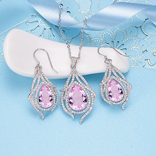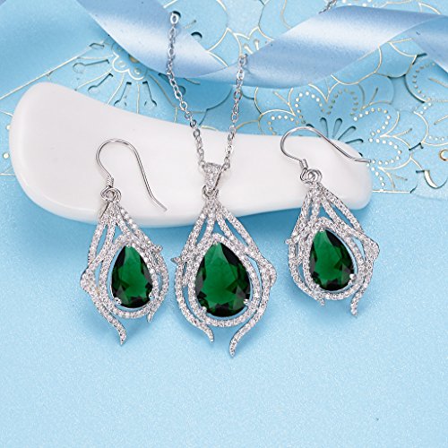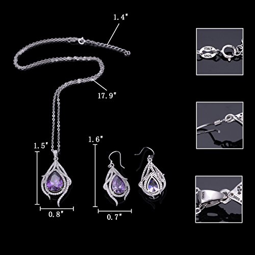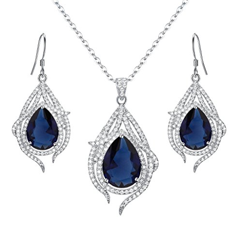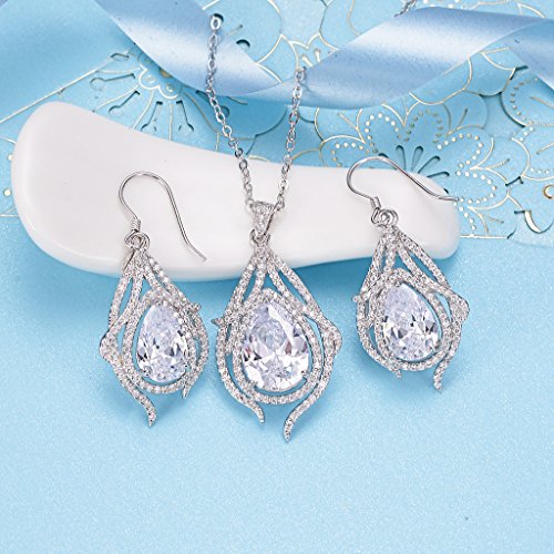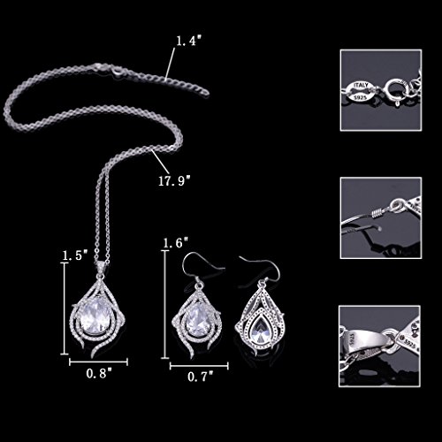 -. Title : EleQueen 925 Sterling Silver Cubic Zirconia Teardrop of Angel Bridal Pendant Necklace Hook Earrings Set