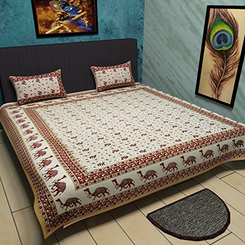 Traditional Mafia Royal Heritage Collection Printed Double Bedsheet with 2 Pillow Covers, King, Brown