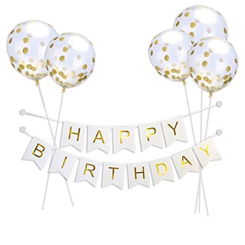 BEAUTIFUL UNICORN PARTY SET: 1pc Lovely unicorn horn & glitter ears with flower decoration, which can add a lot of fun and laughter to funcy parties. 13 Pennants with single letters that spell the phrase "HAPPY BIRTHDAY" product White & Gold Foiled. 6Pcs Unicorn cupcake topper designed using premium glitter gold. Cake is Not Included