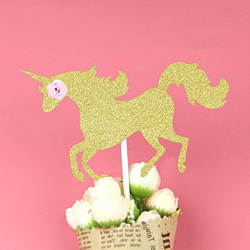 Unicorn Birthday Party Set/ Handmade Gold Unicorn Horn Cake Topper with unicorn cupcake toppers and happy birthday banner/ Happy birthday ,baby shower wedding Unicorn Party Decoration Supplies