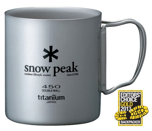 Studio : Snow Peak Publisher : Snow Peak Binding : Sports Product Description Snow Peak Titanium Double-Wall 450 Mug The Snow Peak Titanium Double-Wall 450 Mug is the perfect thing to carry with you on your journeys and travels, and is sure to be useful on a camping trip or outdoor adventure. It holds a good volume of liquid at a capacity of 14 oz., to give you a generous helping each time. The double wall of the mug is built to be heat-retaining, ensuring your beverage stays warm even in cold weather. Also provided are folding handles that make it easier to use and convenient to pack. This features makes it travel-friendly and portable, as it packs away easily and occupies very little place in your luggage. Please keep in mind that the mug must not be used over direct heat. The Snow Peak Titanium Double-Wall 450 Mug ensures that you always have a hot, warm cup of your favorite beverage at the ready, even when you are outdoors and braving the wild. 0