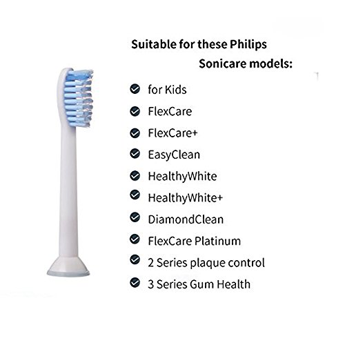 -. Feature : HEALTH & SAFETY STANDARD - The bristles are made of ultra-soft nylon which is easy on your gum, FDA approved and has passed dentist's official health and safety standard. One brush head will last for about 3 months under normal usage / COMPATIBILITY - Our replacement heads easy "Push On" toothbrush provide easy installation and removal. Fits DiamondClean, FlexCare+, FlexCare, HealthyWhite & EastClean, except (see a full list of compatible models in the description below) / FUNCTIONAL DESIGN - Advanced bristle design for superior cleaning / PACKAGE - You will have GENKENT brush heads, if not get GENKENT toothrbush head ,100% full refund / EVERY THREE MONTHS - Reminder bristles fade from blue to white, helping you stay in line with dentist recommendations by alerting you when it's time to change your brush head