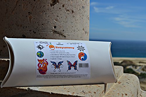 The Live Yummy collection of positive, nature themed and henna temporary tattoo designs is the most creative and delightful collection ~ with 43 designs, it is the best fun for beach party, unique birthday gift for girls, teens, mother, sister, coach, teacher, friend. Also fabulous party favor, hostess gift, and mother-daughter present! Have fun with your friends for hours, choosing your favorites, applying them, and celebrating your gorgeous life.